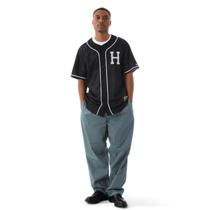 The HUF Brushed Skate pant offers a baggy, customizable fit with pleated front and an elastic waistband with adjustable drawcord.