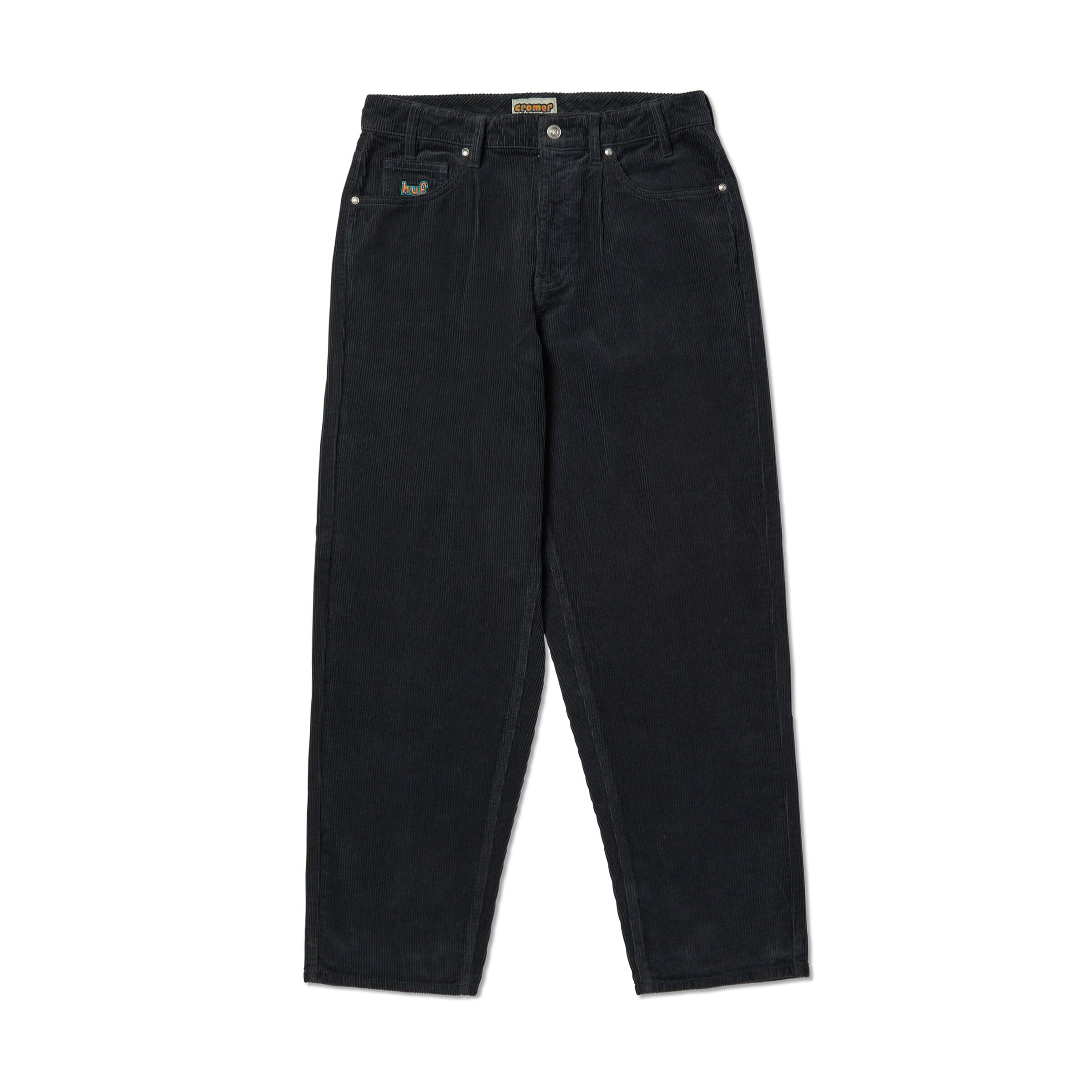 The Cromer Signature Pant is designed in collaboration with HUF team rider Brad Cromer for a '90s-inspired baggy jean combining all aspects of Brad's favorite pants. Made of heavy-duty cotton cord, this everyday skate pant is reinforced at critical seams and features an embroidered HUF logo at the coin pocket, a Cromer label at the waistband, and a generous taper at the leg.