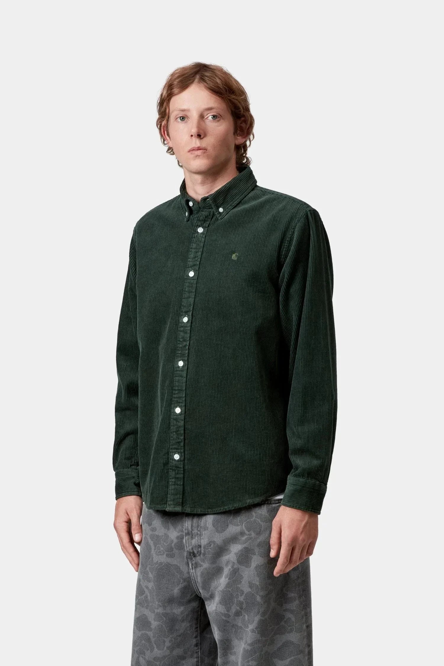 The L/S Madison Cord Shirt is constructed from our heavyweight 8 wale cotton corduroy that has been garment washed. Features a button-down collar and finished with a subtle embroidered 'c' logo on the left chest. Regular fit.