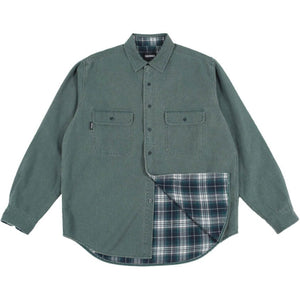 The new Union shirt features two chest pockets with squared off pocket flaps, a heavy-duty washed green cotton outer shell and a soft blue & white checkered flannel lining. The sea green color is really unique and, combined with the workwear influenced shape, is bound to be a popular piece for Holiday. 100% Cotton Outer Shell • Cotton Flannel Lining • Subtle Theories Clip Tag
