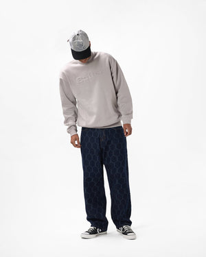 Embossed Logo Crewneck Sweatshirt, Cement, Size Large