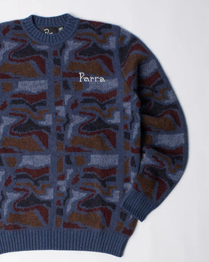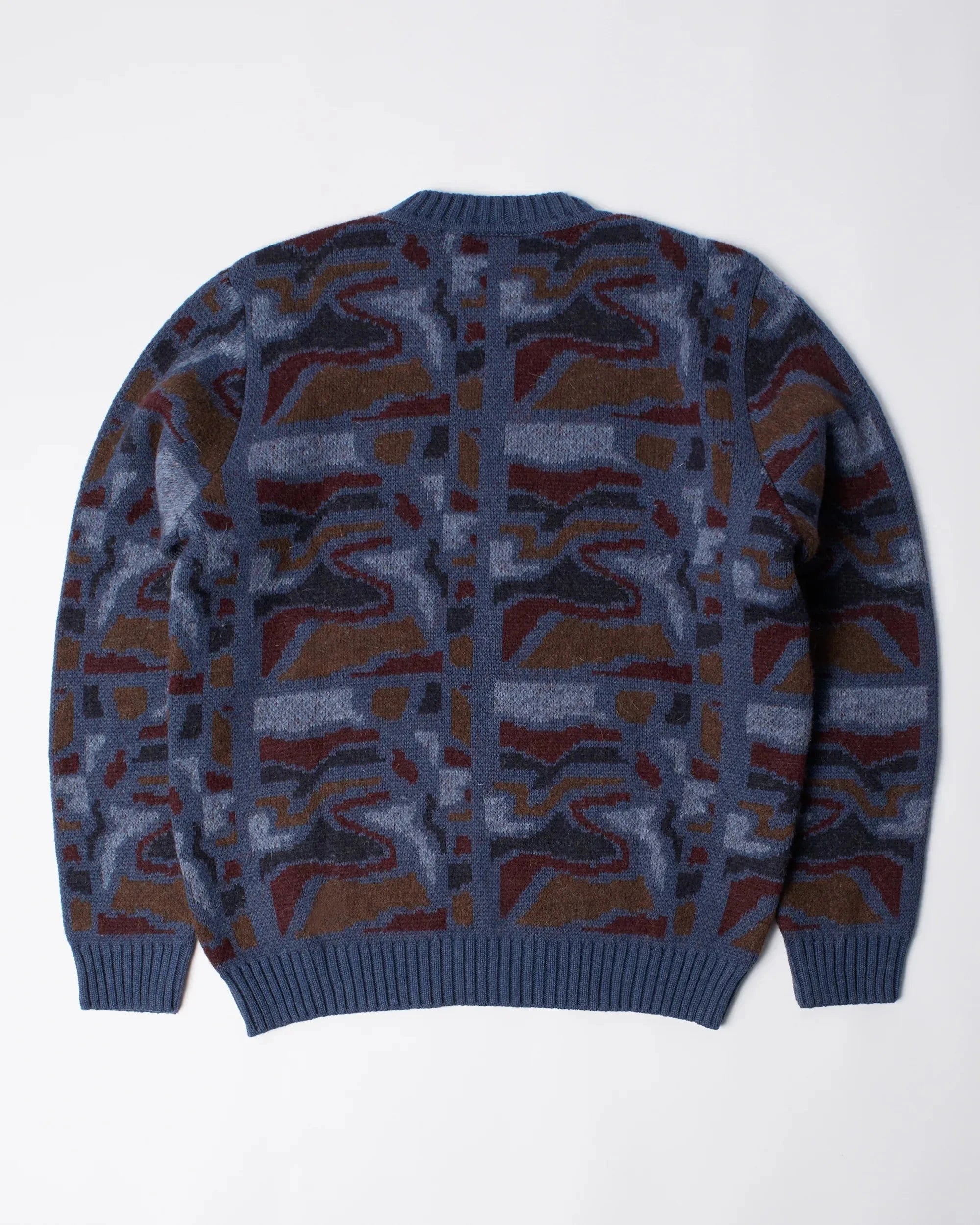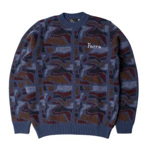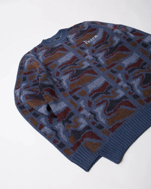 Knitted pullover with the Repeat ftp booster artwork all over, and Weird trad logo embroidery on the chest.