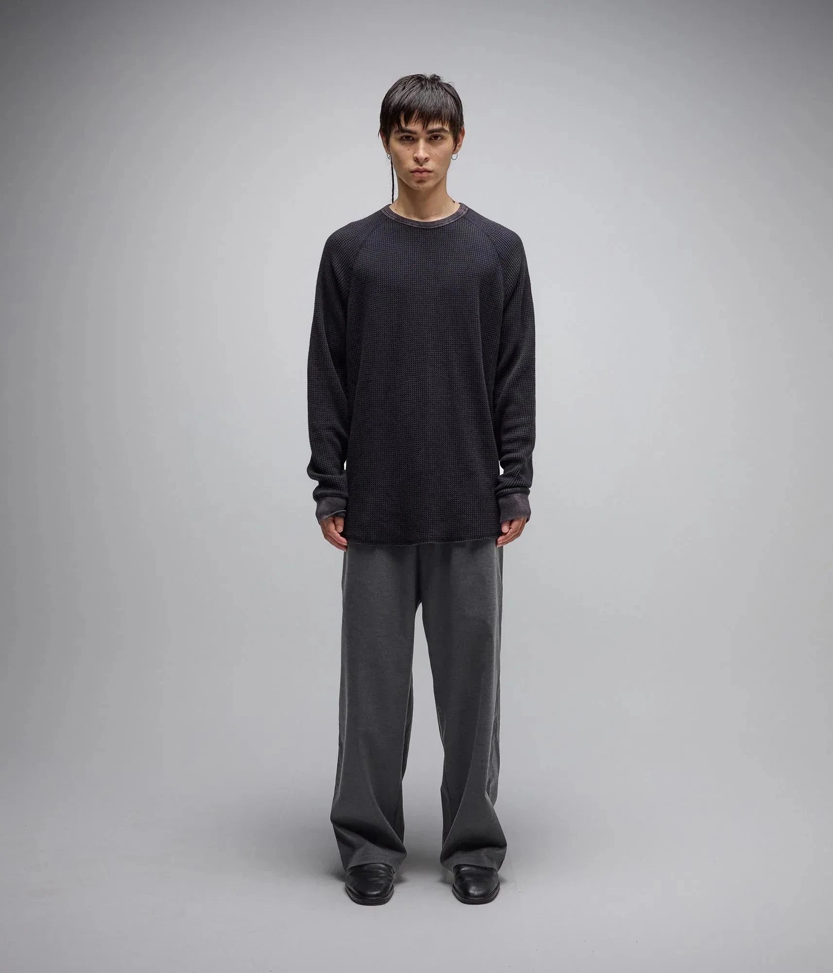 Designed in collaboration with FORMER founder Austyn Gillette, the AG Acid Long Sleeve Waffle is designed in a premium and soft cotton blend waffle and delivered in our AG waffle fit. Featuring a seasonal acid wash finish for a comfortable vintage feel, raw hem, bound collar, and Franchise F logo embroidery.