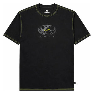 The Nike SB Tee Ishod Wair S/S (Black) blends clean athletic styling with subtle technical detailing that reflects Ishod’s approach to skating—precise, powerful, and always evolving. Built on a deep black cotton base, this short sleeve tee stands out through contrast neon stitching tracing the collar, shoulders, sleeves, and hem. The electric green thread gives the silhouette structure and energy without overpowering the minimal aesthetic.