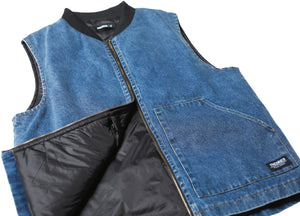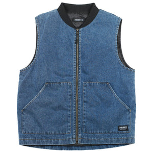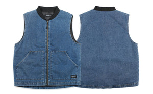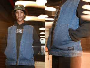 The perfect vest does not exi......the all new Dakota denim vest is a simple, clean vest that brings a touch of class with a rugged edge. Featuring a clean denim front with a snug, black bomber-style collar, comfy pouch pockets and useful internal zipper pockets. 100% Cotton Denim Outer Shell, Internal zipper pockets, Nylon Liner